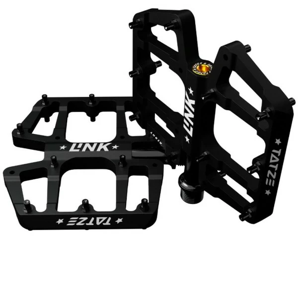 Das LINK-Pedal mit Titanachse ist ein extrem dĂŒnnes Flat-Pedal. Die groĂe Plattform mit 112cm2 (113x99mm/LxB) und 40 TATZE PINs mit gezielter Ăberhöhung sorgen fĂŒr enormen Grip und eine gute Verbindung zwischen Pedal und Schuh. Um den Grip weiter zu erhöhen bzw. die KontaktflĂ€che zu maximieren, können zusĂ€tzlich 4 PINS pro Seite eingeschraubt werden. UnerwĂŒnschten Bodenkontakt vermeidet das LINK durch seine extrem dĂŒnne Bauweise, so hat der Pedalkörper an der exponierten AuĂenkante nur 8,8mm und damit ist das LINK eines der dĂŒnnsten Pedale auf dem Markt. Das offene Design lĂ€sst Schmutz durch das Pedal fallen und macht das Pedal mit nur 298g zum Leichtgewicht. Das LINK ist hochwertig gelagert, verbaut wird dabei  ein IGUS JSM Gleitlager und 2 Kugellager. Zur Abdichtung sind 2 Doppellippendichtringe eingebaut, die die Lager vor Schmutz und Feuchtigkeit schĂŒtzen. Die Lager- und Dichtungseinheit macht das Pedal nachhaltig im Sinne einer langen Lebensdauer. Zudem können Lager und Dichtungen mit dem optional erhĂ€ltlichen Refresh-Kit in 5 Minuten erneuert werden, um die Uhr wieder auf 0 zu stellen.